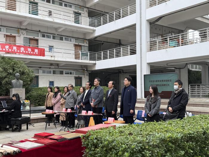 丝竹隽朗谱风华,鉴美求真念师恩。10月26日上午10时,平民音乐教育家费承铿教授生前珍藏物品捐赠仪式在江苏师范大学师德建设基地广场隆重举行。费承铿教授之子费宏雷先生、儿媳朱文静女士,学院班子成员、各界校友及在校师生代表齐聚费老雕像前,共同缅怀费老的馨德懿行。学院党委书记高小平主持仪式。