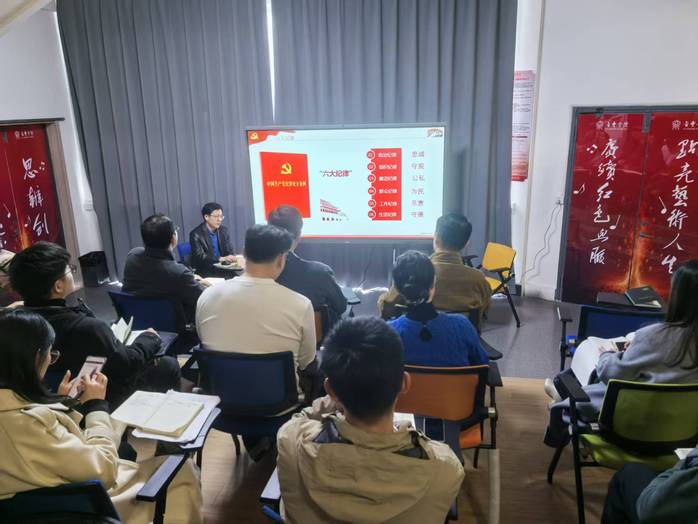 沈书记从学思践悟党的纪律规矩、以案为鉴筑牢纪律防线和联系实际严守纪律规矩三个面,结合实际案例,对新时期高校教师应遵守的纪律要求进行了深入阐述,强调要始终把政治纪律和政治规矩挺在前面,自觉抵制不良风气,提醒干部教师要严于律己、防微杜渐,共同营造风清气正的育人生态。高小平书记在总结时指出,要以廉为戒,筑牢思想防线;以责为纲,践行使命担当;以行为证,树立良好象形。学院教职工要严守纪律规矩,以德立身,坚持教书育人与自我修养相统一,始终做到心有所畏、言有所戒、行有所止,切实维护高校教师的良好形象,共同营造清朗的学院生态,以高尚师德和扎实作风推动高质量发展。