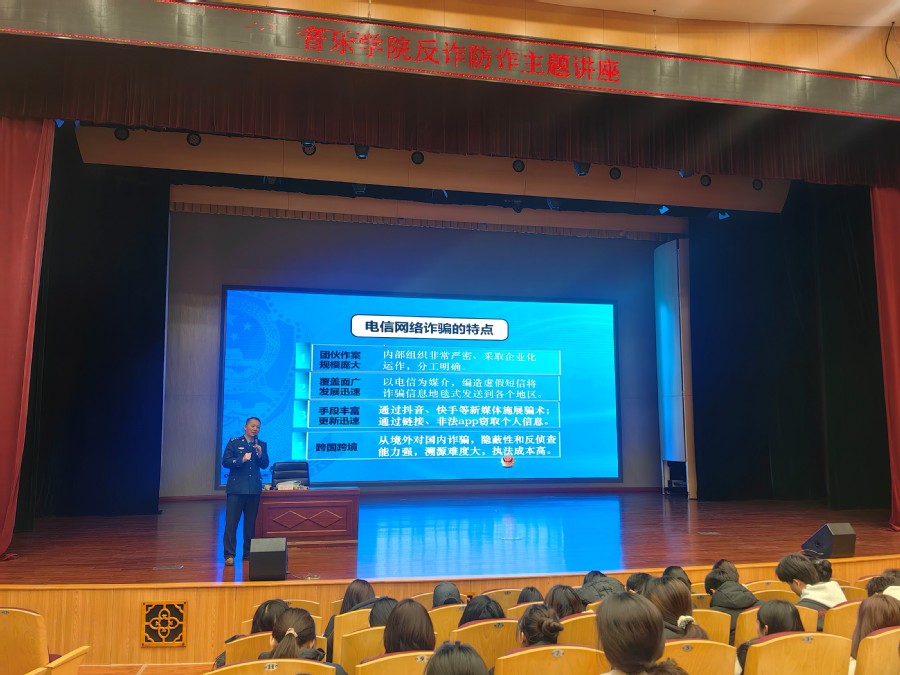 本次讲座是音乐学院深化平安校园建设、落实立德树人根本任务的重要举措。为学院新生有效普及了反诈知识,提升了防范技能和应对处置能力。未来,音乐学院将继续创新安全教育形式,持续开展安全宣传教育,将反诈防诈意识深植于师生心中,共同营造全员防诈、反诈的浓厚氛围。