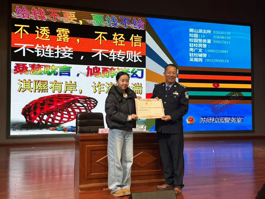 讲座过程中,周警官还设置了互动问答环节,针对特定套路骗局出了对应的问答题目,并为回答问题的学生发放了纪念礼品,现场气氛热烈,学生们表示受益匪浅。