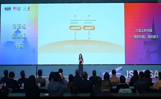 我校欧美同学会会员吴曼妮老师凭借主题演讲《六弦上的中国——我的乐韵,我的故土》成功突围,荣获德语组第一名。演讲中,吴曼妮老师结合个人经历,深情讲述了自己如何以吉他这门“世界语言”为载体,将中国故事融入旋律、传递海外的实践历程,让现场观众感受到音乐跨文化传播的独特魅力与中国文化的深厚底蕴。