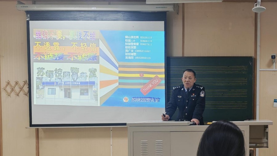 讲座环节,周警官结合一线警务工作实战经验,系统讲解主流诈骗类型特征以及实用化防范实操技巧。聚焦当代大学生日常社交、消费娱乐、兼职求学,重点剖析了面向高校群体的高频诈骗陷阱,围绕虚假购物交易、刷单返利兼职、游戏账号装备交易、冒充同窗亲友借钱、虚假网恋交友等典型骗局,依托反诈警示短视频播放等展示形式,直观曝光诈骗分子精心设计的诱导话术,让在场学生看清诈骗行为背后的隐蔽作案套路,从思想根源上绷紧安全防范之弦。