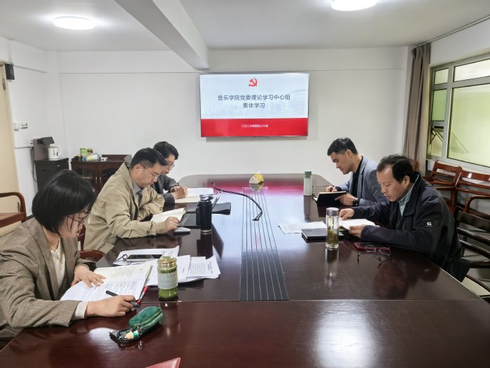 4月20日上午,音乐学院举行党委理论学习中心组2026年度第四次集体学习暨树立和践行正确政绩观学习教育领导班子读书班第四次集中学习,学院党委委员、领导班子成员参加学习,党委书记高小平主持学习。